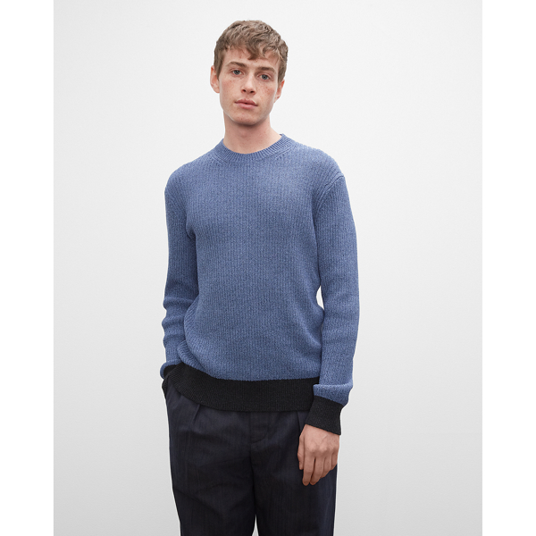 Club Monaco Blue Linen Stitch Crew Neck Sweater In 2021 Sweater Club Crew Neck Sweater Distressed Denim Skirt